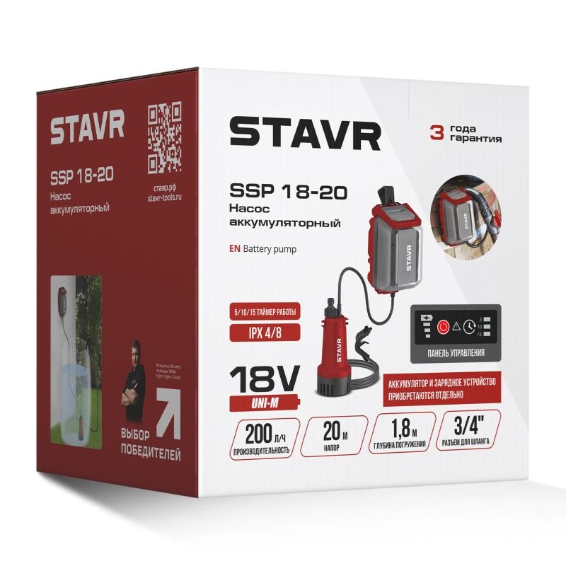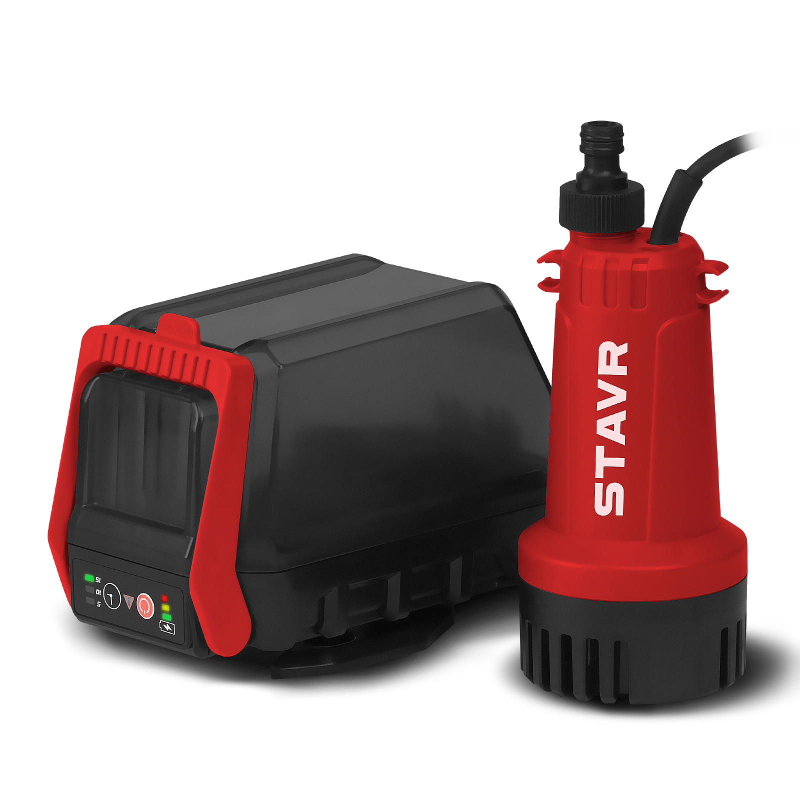 Характеристики: Тип питания: 18 В (Li-Ion, UNI-M) Тип двигателя: щеточный Производительность макс.: 33 л/мин Напор макс.: 20 м Глубина погружения макс.: 1,8 м Размер пропускаемых частиц макс.: 0,2 мм Выходной патрубок: ¾" Длина шланга: 2 м Время работы: до 60 мин. (STAVR SB 18-6-01) Вес: 1,7 кг