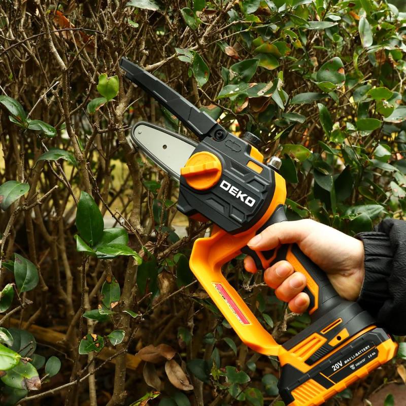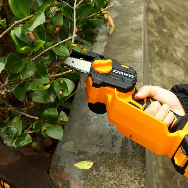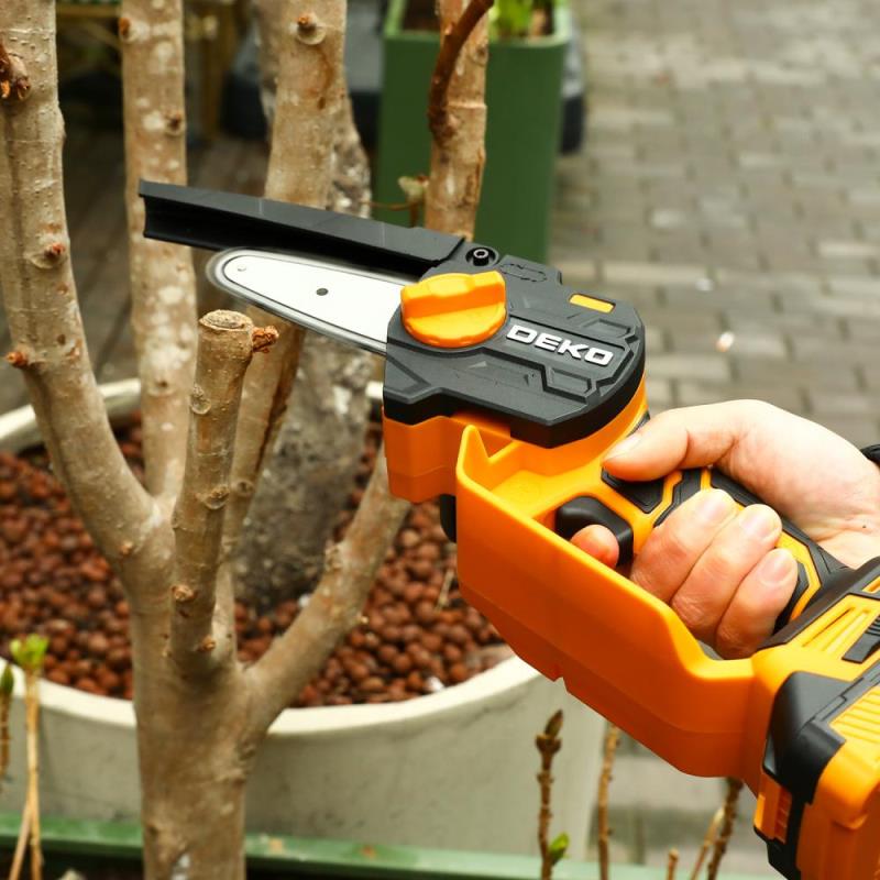 Пила цепная аккумуляторная DEKO DKCHS 20-4, 20В, 1x2.0Ач незаменима при работе в мастерской или в саду для распиливания различных материалов. Предназначена для пропилов в древесине и пластмассе. Инструмент работает от литий-ионного аккумулятора.