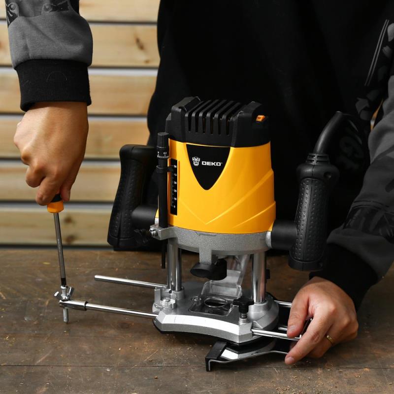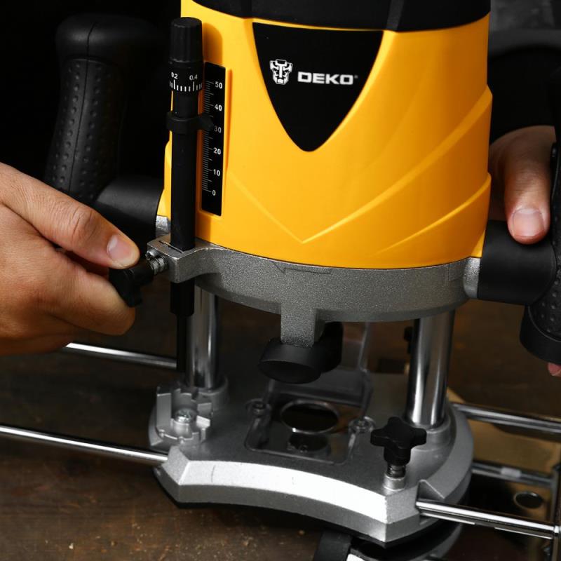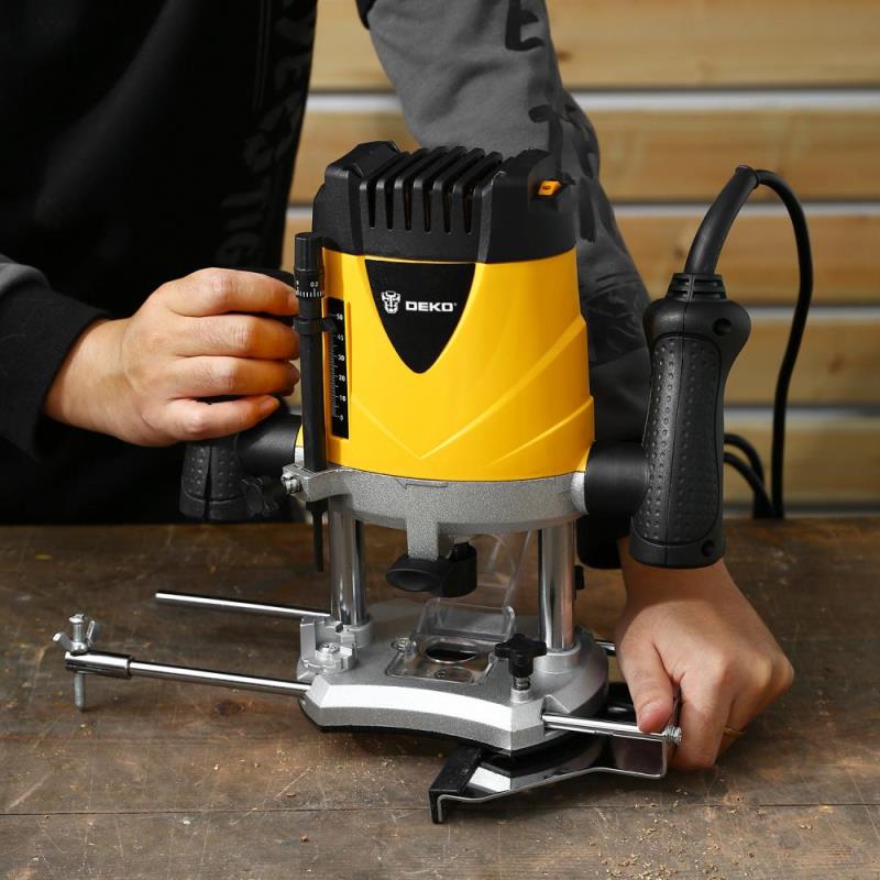 Фрезер DEKO DKR1900 применяется в различных столярных и плотницких работах для обработки кромок и профилей, фасок в деревянных конструкциях, для изготовления пазов и т.д. Рукоятки с нескользящими накладками способствуют надежному и комфортному хвату инструмента. Линейка, расположенная в боковой части корпуса, обеспечивает точную регулировку глубины фрезерования. Инструмент можно настроить на выполнение определенной задачи путем изменения числа оборотов. Инструмент работает только при нажатой кнопке пуска.