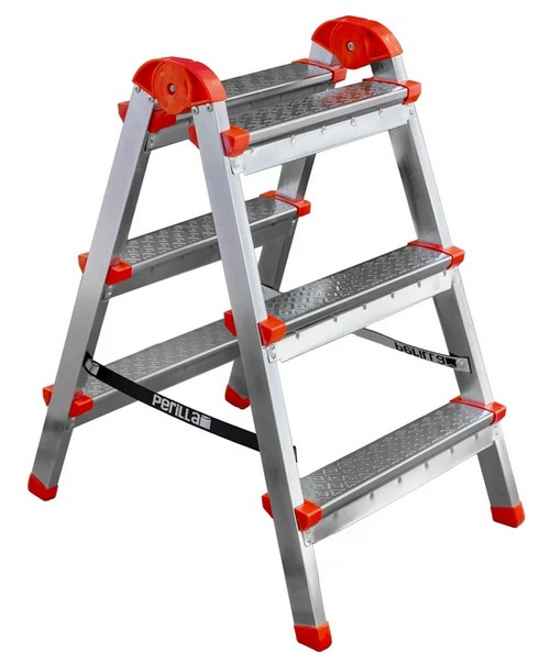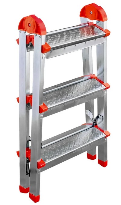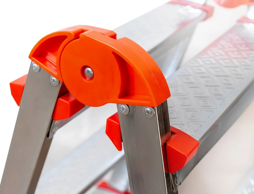 Стальная двухсторонная стремянка ЯРУС 3 ступени используется в быту - дом, сад, гараж, а также в коммунальной и строительной деятельности. Надежность. Покрытие профиля защищает от большинства вмятин при падении стремянки. Широкие профилированные ступени с рифлением для длительной работы на высоте. Пластиковые рифленые наконечники на основании опорных направляющих предотвращают скольжение и защищают напольное покрытие от царапин.