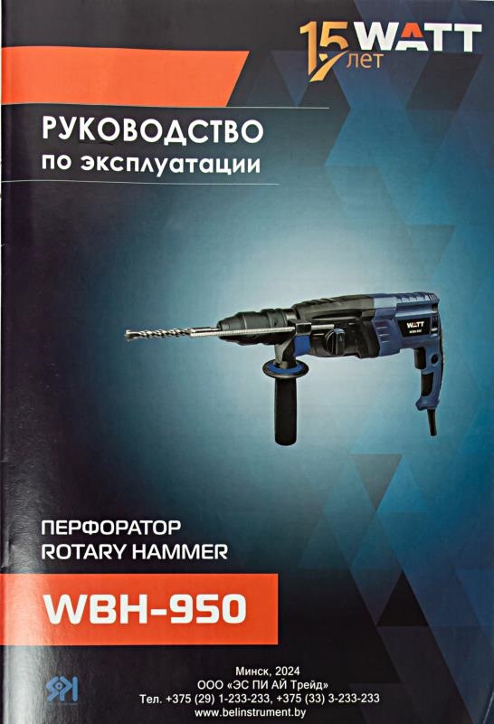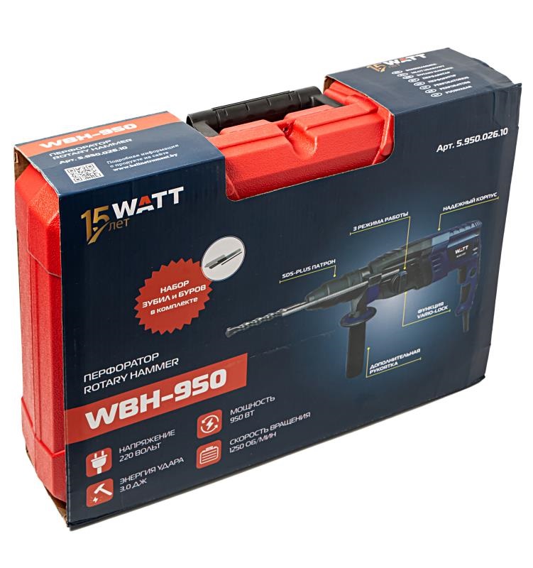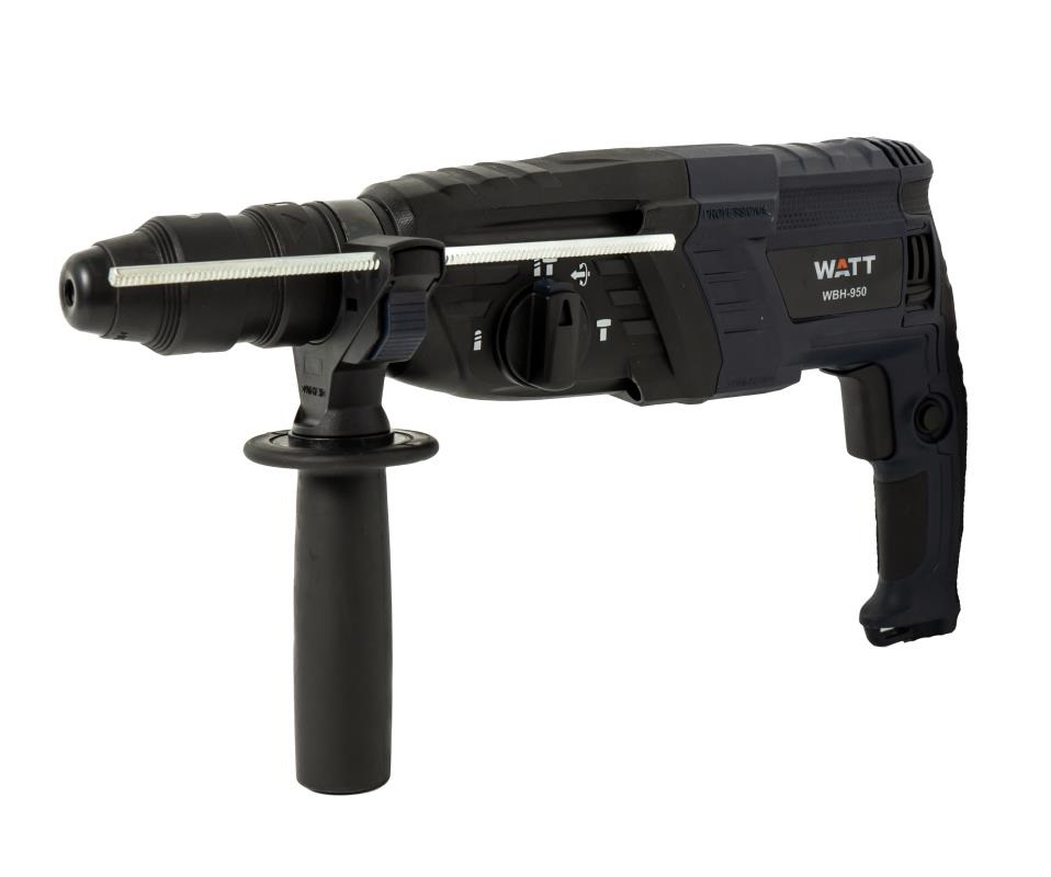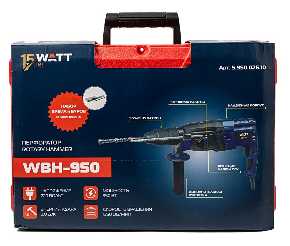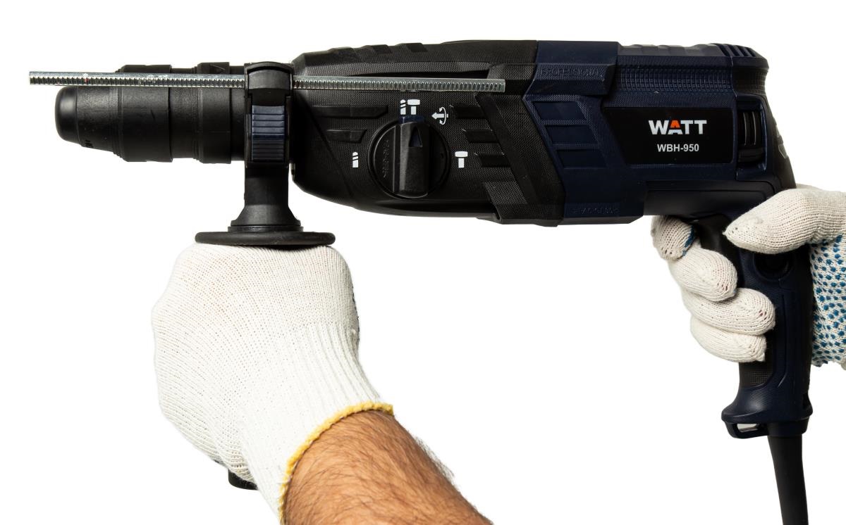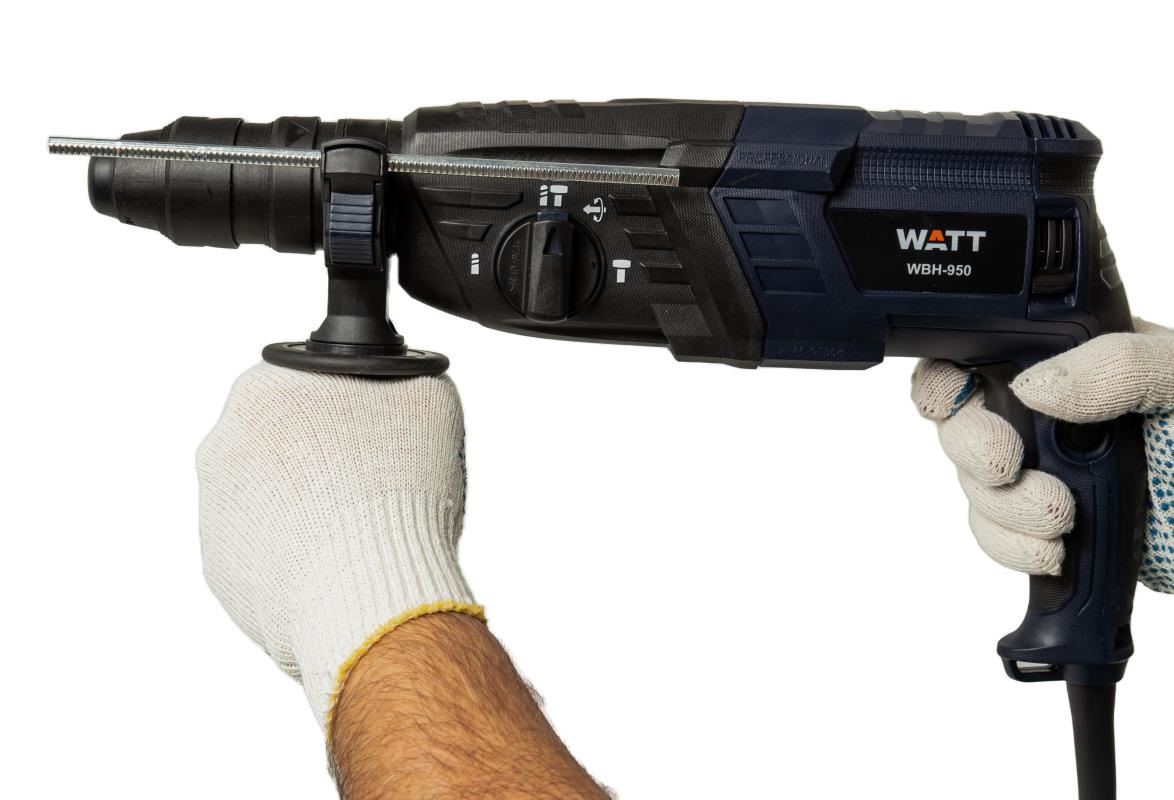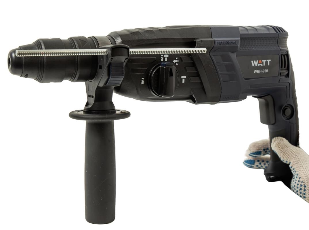 Перфоратор WATT WBH-950 - это мощный и надежный инструмент, предназначенный для сверления бетона, камня, кирпича и других твердых материалов. Он идеально подходит как для домашнего использования, так и для профессиональных работ. Особенности: • Мощный двигатель 950 Вт обеспечивает высокую скорость сверления и долгий срок службы. • Система SDS-Plus для быстрой и легкой смены оснастки. • Адаптер в комплекте для быстрозажимного сверлильного патрона. • Регулировка частоты ударов позволяет подобрать оптимальный режим работы для различных материалов. • Эргономичный дизайн с прорезиненной рукояткой обеспечивает удобство и комфорт в работе. • Встроенная система пылеотвода защищает двигатель от пыли и продлевает срок его службы. • Современный ударопрочный пластиковый кейс для транспортировки и хранения. • Буры и зубила в комплекте, чтобы сразу приступить к работе.