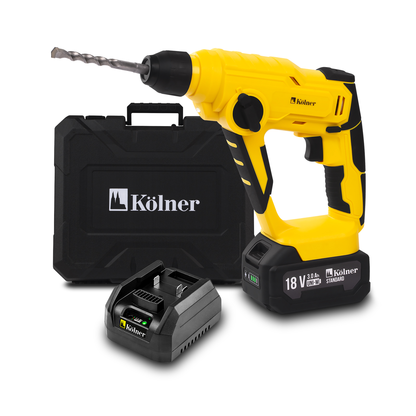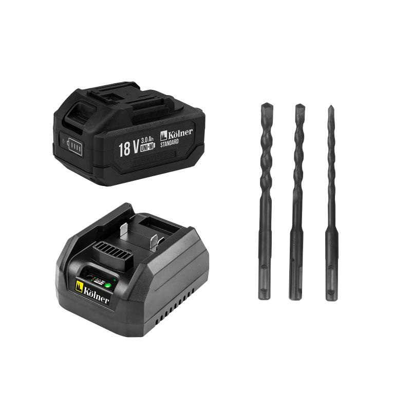Характеристики: Тип питания: 18 В (Li-ion, UNI-M Standard) Режимы работы: ударное / безударное сверление Диаметр сверления: бетон / сталь / дерево — 12 / 10 / 13 мм Энергия удара: 1,2 Дж Частота холостого хода: 0–900 об/мин Частота ударов: 0–5000 уд/мин Патрон: SDS-PLUS Габаритные размеры: 220 × 70 × 190 мм Вес: 1,2 кг