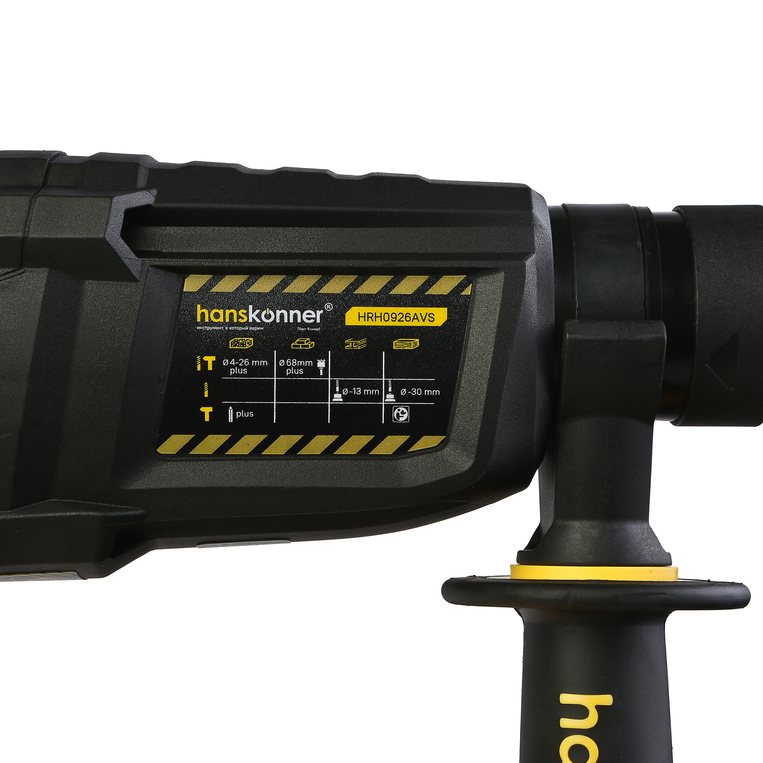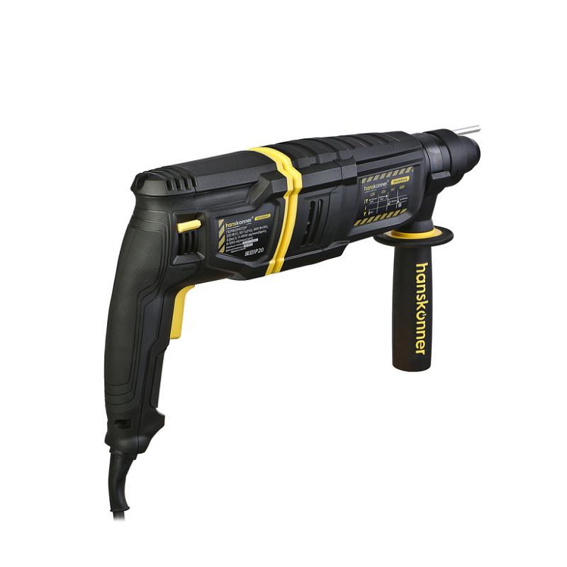 Особенности: Перфоратор Hanskonner HRH0926AVS — мощный, маневренный электроинструмент для сверления отверстий в таких материалах как кирпич, бетон или снятия старой керамики, штукатурки. В целях выполнения конкретной задачи следует выбрать один из режимов: «удар», «сверление» или «сверление с ударом». Оптимальной настройке к проведению долбления содействует регулировка угла положения оснастки в патроне. Модель отличается встроенной системой виброгашения «AVS-system», которая поддерживает удобство и безопасность при использовании перфоратора. Бронированный ротор благоприятствует надежности при выполнения протяжных работ в условиях повышенной запыленности. Долговечности инструмента содействуют подшипники увеличенного ресурса «LonglifeBearings». Патрон SDS+ предоставляет возможность быстрого и верного крепления необходимой оснастки. В интересах износостойкости используется шарнирное крепление кабеля питания. Морозостойкий резиновый сетевой кабель длинной 4 м охватывает рабочую зону площадью 50 м2