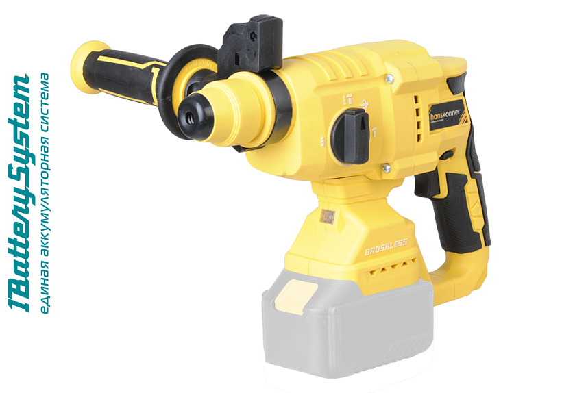 Аккумуляторный перфоратор HANSKONNER HRH2022BL предназначен для безударного и ударного сверления отверстий в различных материалах (при использовании соответствующих сверл и буров), а также для работы в режиме долота (при установке соответствующего инструмента). Бесщеточный двигатель уменьшает вес и габариты инструмента, увеличивает мощность, продолжительность работы и ресурс. Подсветка рабочей зоны позволит работать в условиях недостаточной освещенности. Данная модель является частью системы 1BatterySystem и совместима со всей линейкой аккумуляторного инструмента. Для Вашей выгоды модель поставляется без аккумулятора и зарядного устройства.