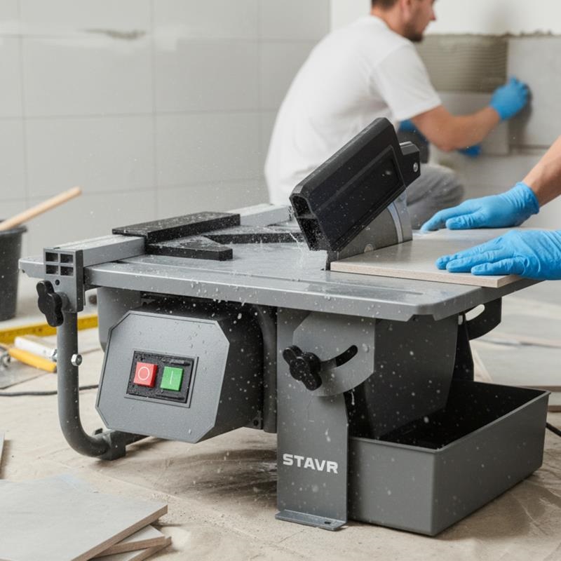 Особенности: Распил настенной и напольной плитки. Параллельный упор для точного реза. Водяное охлаждение диска (мокрый рез) для минимального пылеобразования. Видимая шкала измерения на столе для удобной работы. Наклон стола на 45 градусов для монтажа плитки в углах. Прорезиненные демпферы на ножках для снижения вибрации и большей устойчивости. Защита от перегрева.