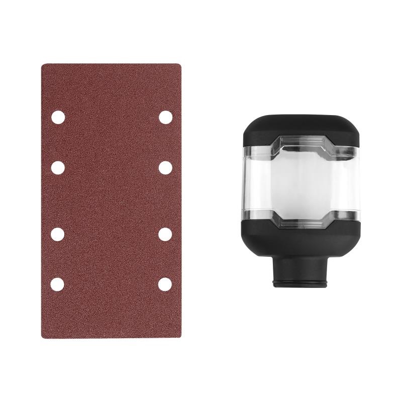 Комплект поставки: шлифовальная машина шаблон для отверстий шлифовальная бумага контейнер для сбора пыли руководство по эксплуатации.