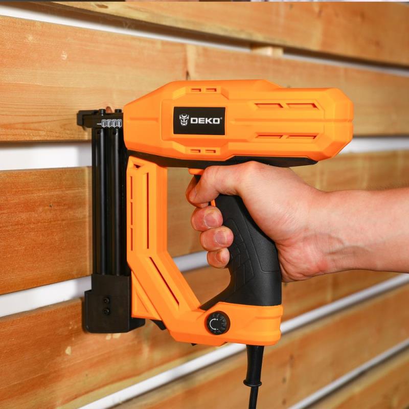 Степлер электрический DEKO DKES100 предназначен для крепления тонких деревянных деталей, деталей из масонита или других материалов, требующих надежной фиксации.