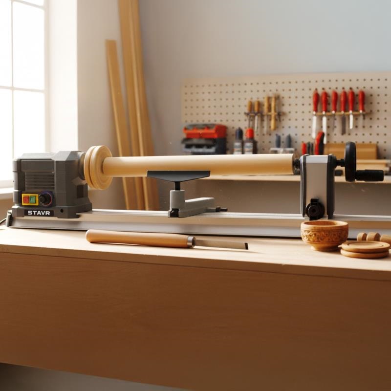 Особенности: РЕГУЛИРОВКА СКОРОСТИ ВРАЩЕНИЯ: плавная регулировка оборотов шпинделя, подходит для точной работы с мягкими и твёрдыми породами древесины. РАБОТА С ЗАГОТОВКАМИ: длина до 600 мм и диаметр до 250 мм позволяют обрабатывать разные и нестандартные детали. УДОБНАЯ НАСТРОЙКА: инструментальная опора фиксируется надёжно и быстро перемещается для комфортной и безопасной работы. МАГНИТНЫЙ ВЫКЛЮЧАТЕЛЬ: защищает от самопроизвольного запуска при сбоях питания или случайном включении. ЛЕГКАЯ КОНСТРУКЦИЯ: удобство эксплуатации в мастерской и транспортировки. КОМПЛЕКТАЦИЯ: станок, планшайба, гаечный ключ (2 шт.), шестигранный ключ, винт фиксации опоры, стамески (2 шт.), руководство по эксплуатации.