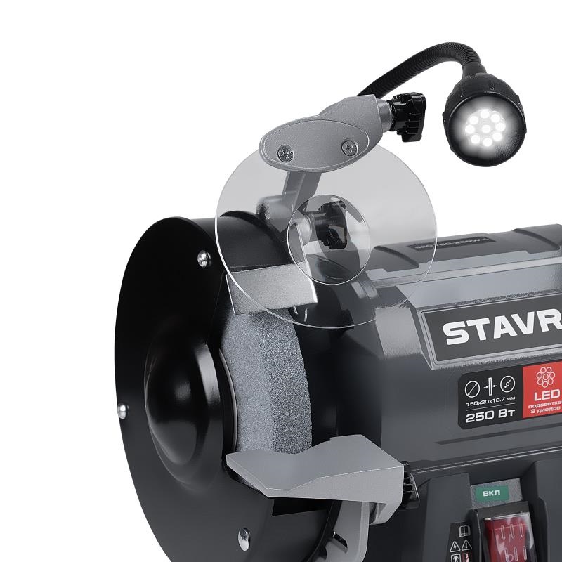 Особенности: Профессиональный инструмент для мастерской и мелкого производства. Асинхронный двигатель, не требующий обслуживания. Яркая и мощная диодная подсвета рабочей зоны. Защитные стекла с линзой 3х для детального контроля при работе. Настраиваемые упоры для удобной работы. Пылезащитный выключатель. Резиновые опоры на ножках для снижения вибрации при эксплуатации. Отверстия для крепления на верстаке или столе.