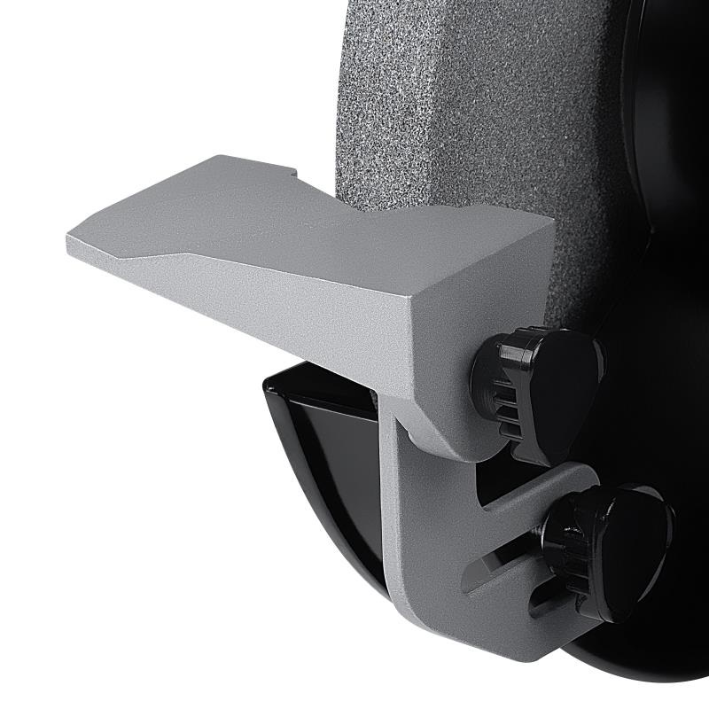 Особенности: Профессиональный инструмент для мастерской и мелкого производства. Асинхронный двигатель, не требующий обслуживания. Яркая и мощная диодная подсвета рабочей зоны. Защитные стекла с линзой 3х для детального контроля при работе. Настраиваемые упоры для удобной работы. Пылезащитный выключатель. Резиновые опоры на ножках для снижения вибрации при эксплуатации. Отверстия для крепления на верстаке или столе.
