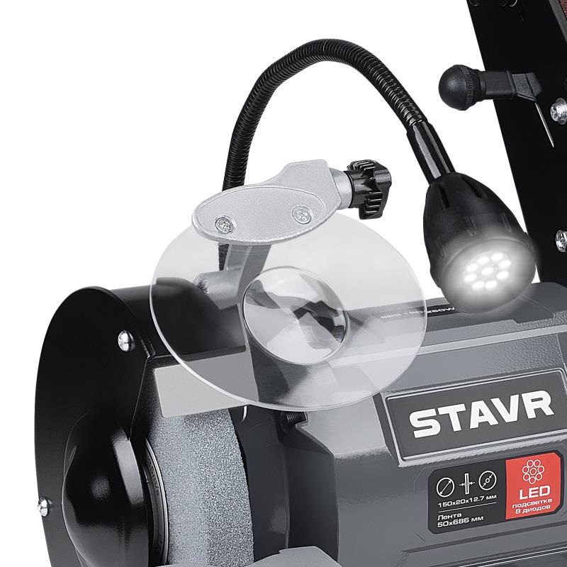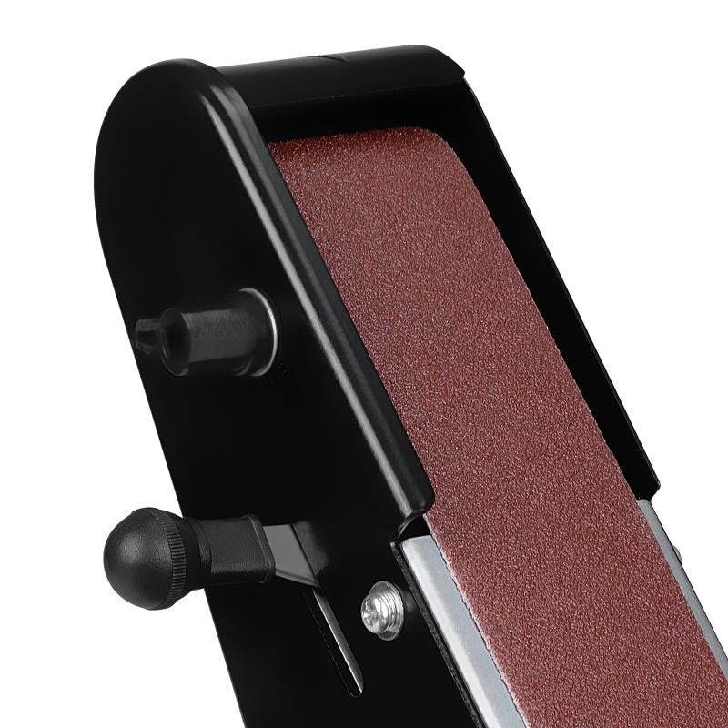 Особенности: Профессиональный инструмент для мастерской и мелкого производства. Асинхронный двигатель, не требующий обслуживания. Яркая и мощная диодная подсвета рабочей зоны. Защитное стекло с линзой 3х для детального контроля при работе. Настраиваемые упоры для удобной эксплуатации. Регулятор положения и натяжения ленты. Пылезащитный выключатель. Отверстия для крепления на верстаке или столе.