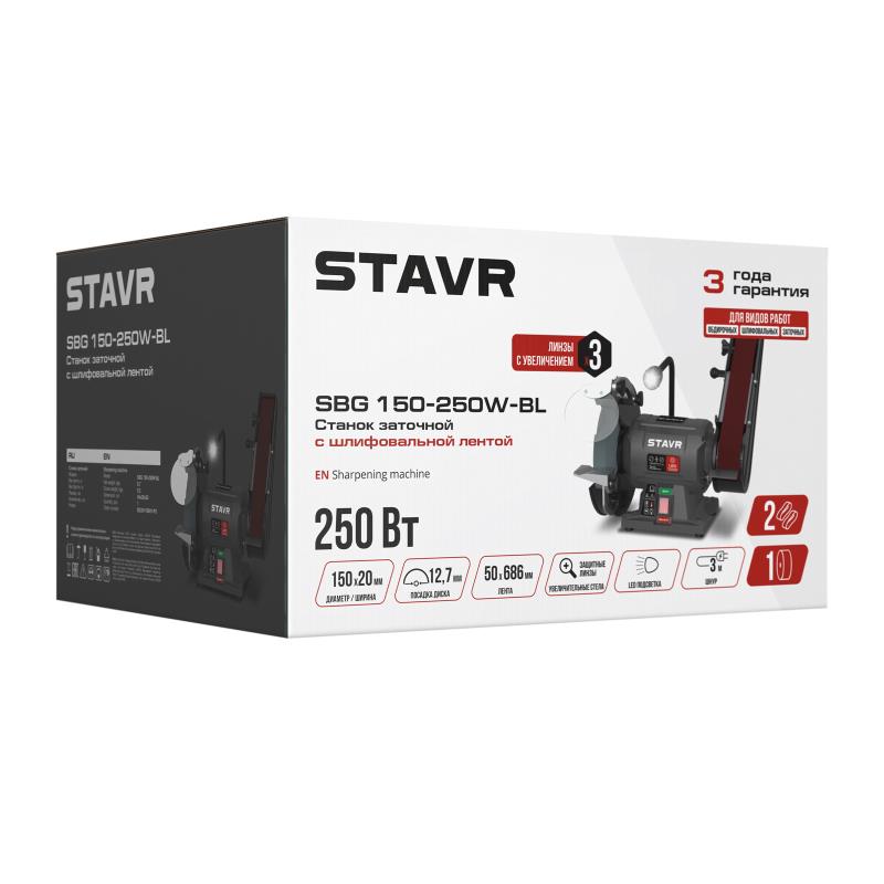 Комплект поставки: Станок Заточной круг 150х20х12,7 мм (60) Шлифовальная лента 50х686 мм (80, 100) Защитный экран с креплением Рабочая площадка с креплением Руководство по эксплуатации.