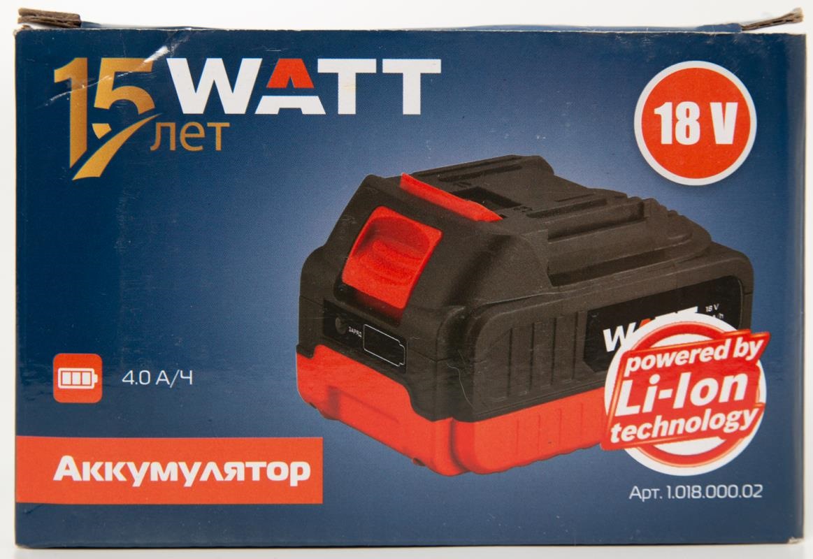 1.018.000.02 Аккумулятор WATT, 18V, 4.0 Ah, Li-Ion