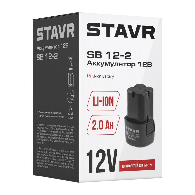 Описание.: Подходит для дрели-шуруповёрта SDD 12BL-2K. Для зарядки рекомендуется использовать ЗУ STAVR SBC 12-1A. Подходит для зарядки штекерным ЗУ на 12В.