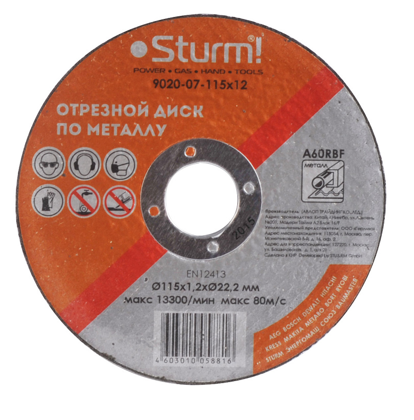9020-07-115×12 Круг отрезной 115×1,2×22,2 для металла, Sturm!