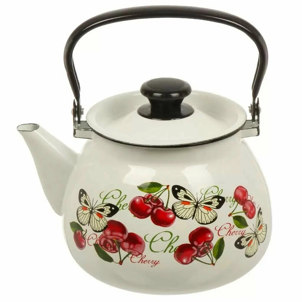 42104-132/6-У4БлЧер Чайник сферич. с мет.р. 3,5л (белая) Черешенка