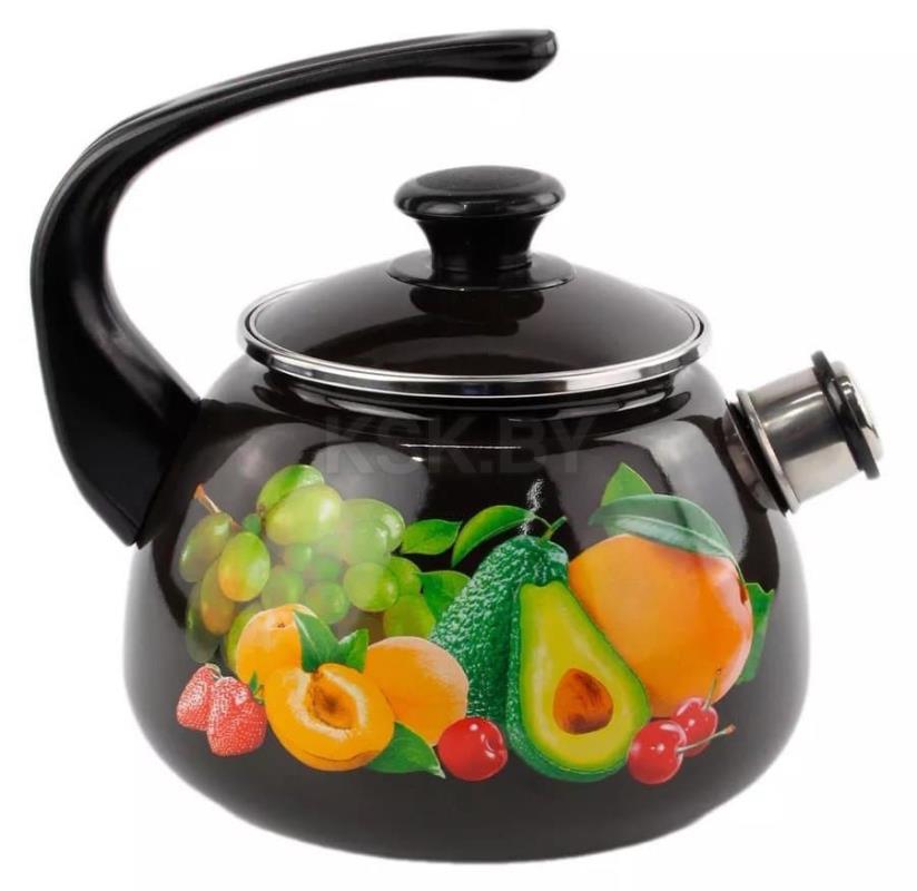 43604-102/6-У4Кр Чайник эмал цельноштамп.со свистком 2л (корич.) С декором