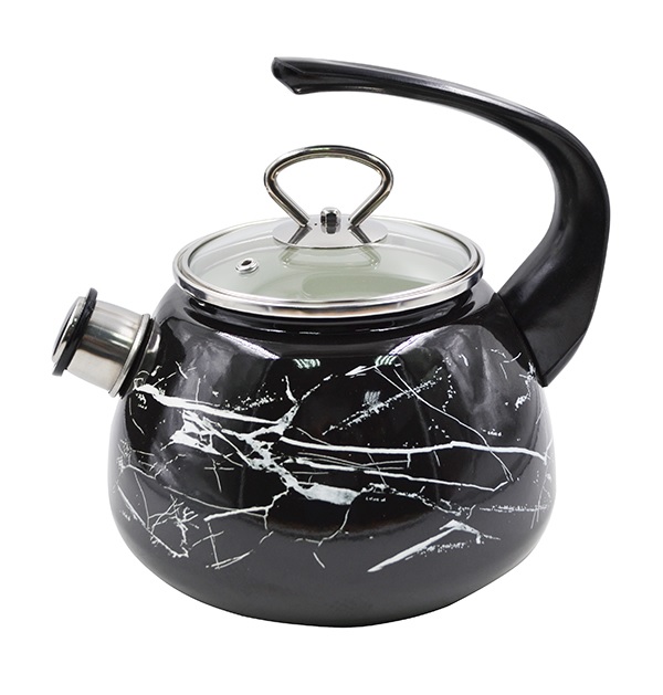 43615-103/4.01-У1ЧрЧРМ Чайник цельноштамп. со свистком стекл. крыш. 2л (черная) Черный мрамор