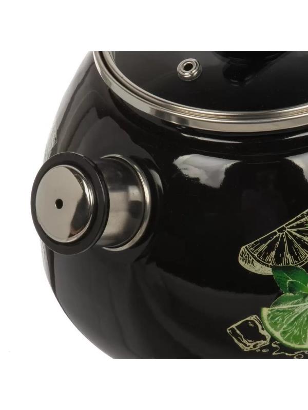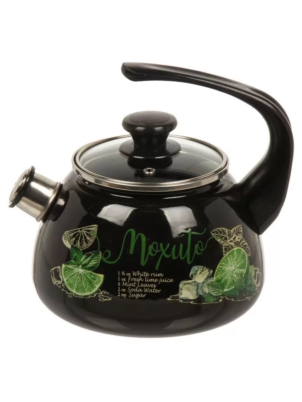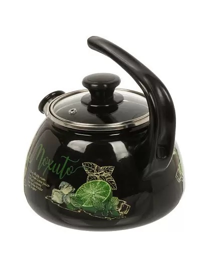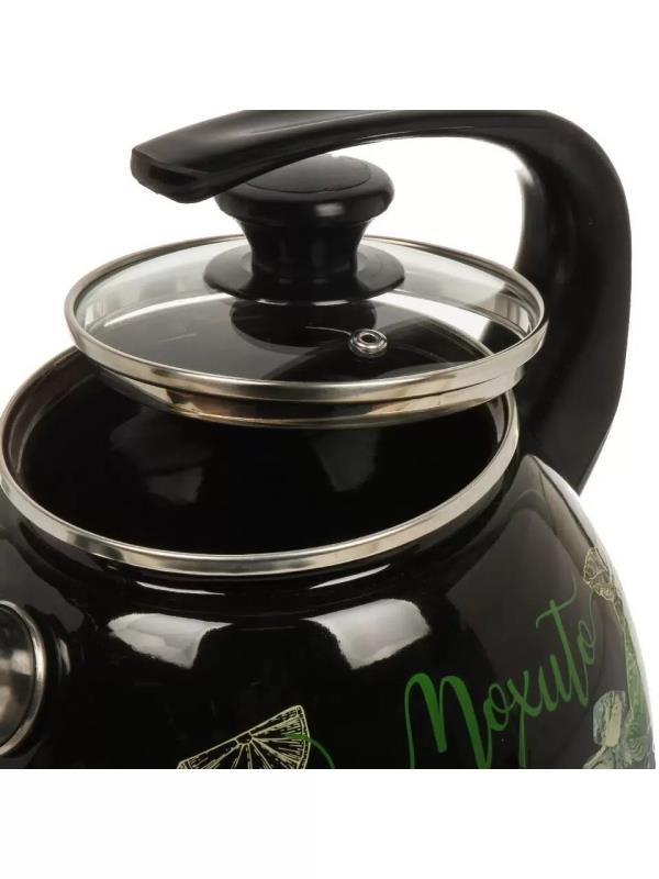 43615-103/4.02-У4ЧрМх Чайник цельноштамп. со свистком стекл. крыш. 2л (черная) Мохито