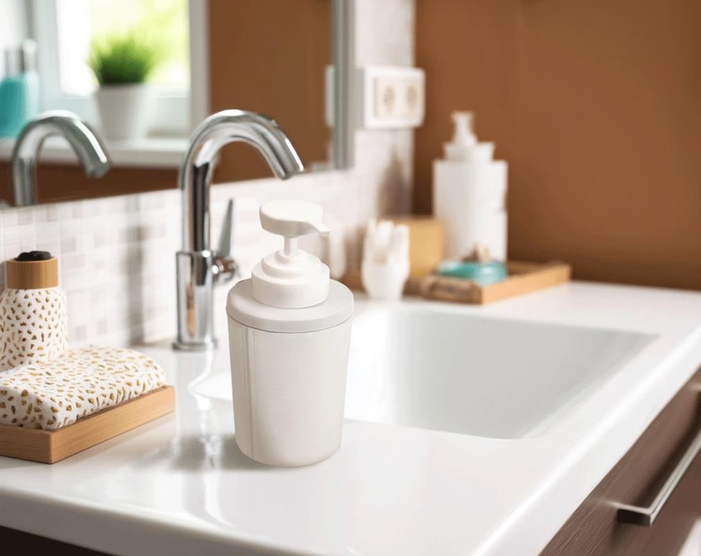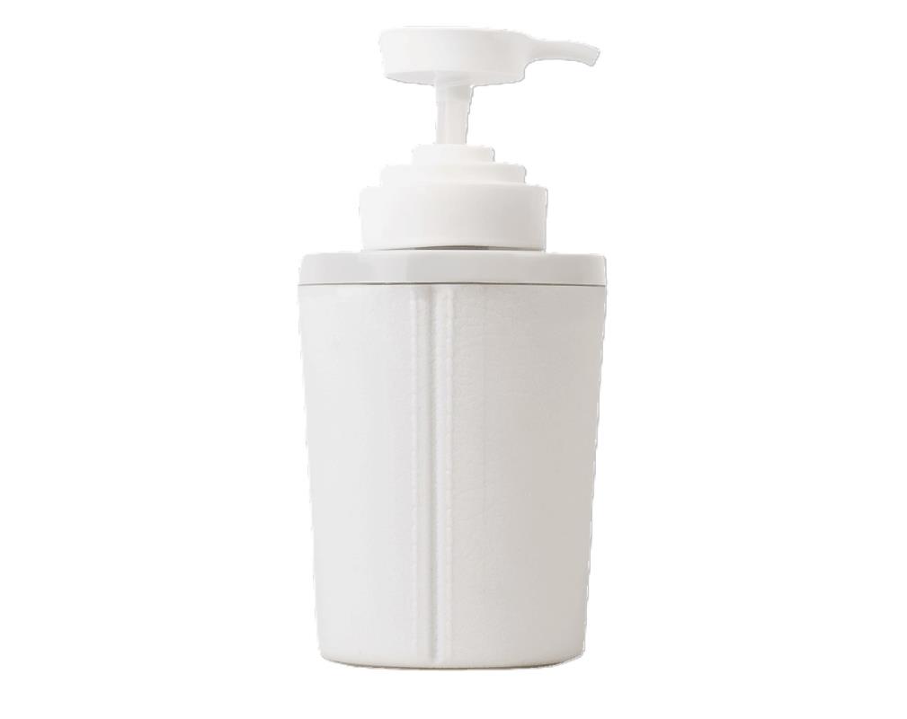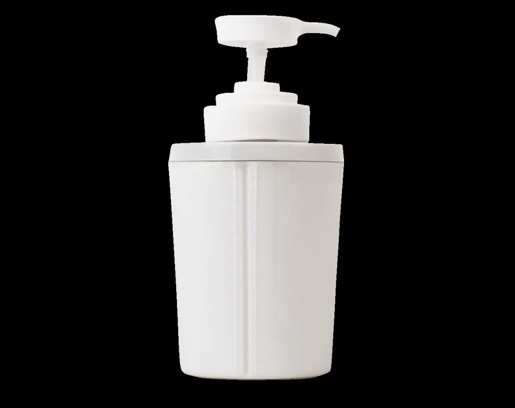 Корпус диспенсера выполнен из термопластичного эластомера (ТЭП) с имитацией текстуры кожи. Он мягкий на ощупь, не скользит, не бьётся и устойчив к влаге и бытовой химии. Материал сохраняет цвет и форму при активной эксплуатации, легко очищается и не впитывает запахи.