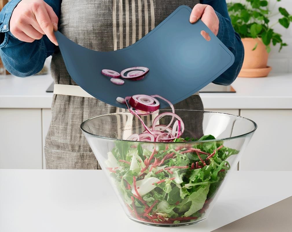 Максимум удобства для тех, кто ценит комфорт на кухне! Гибкая доска макси идеально подойдёт для разделки мяса, рыбы, крупных овощей и теста. Её эластичная поверхность легко принимает нужную форму, позволяя одним движением направить нарезанные продукты прямо в ёмкость. А после использования — можно повесить доску за специальное отверстие на крючок, чтобы она всегда была под рукой и не занимала место на столешнице.