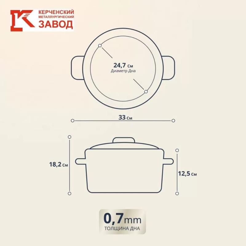 Характеристики: Материал: эмалированная сталь. Материал крышки: стекло, с выпускным клапаном Высота без крышки: 12,5 см. Высота с крышкой: 18,2 см Диаметр дна: 24,7 см. Ширина с ручками: 33 см. Толщина дна: 0,7 мм. Объем: 4 л. Цвет: бежевый, с рисунком. Тип дна: однослойный Подходит для: газовых, стеклокерамических и электрических плит Продукция изготовлена в соответствии с ГОСТ 24788-2018, толщина эмали не менее 0.2 мм. Вес в упаковке 1.64 кг Габариты упаковки 13 x 26 x 26 см