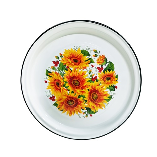 Бренд: Керченский металлургический завод Термостойкий поднос с бортиками Материал: эмаль Диаметр верхней части: 36 см Высота: 3 см Объем: 2л Форма: круглая Цвет: белый Нельзя мыть в посудомоечной машине