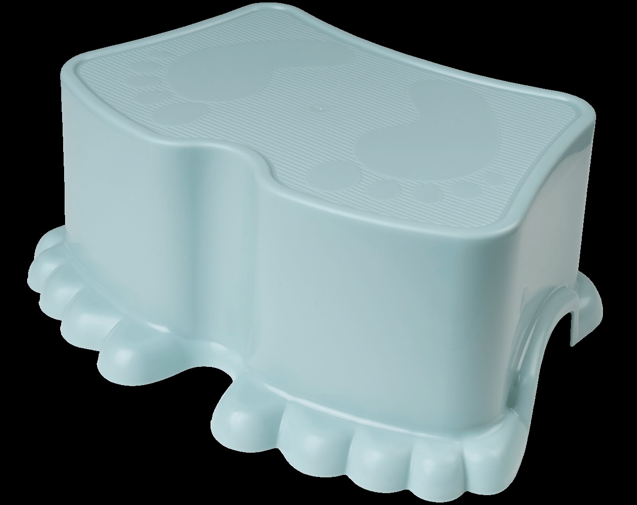 Рельефный узор в виде забавных пяточек, защитит ножки малыша от скольжения по поверхности табуретки-помощника.