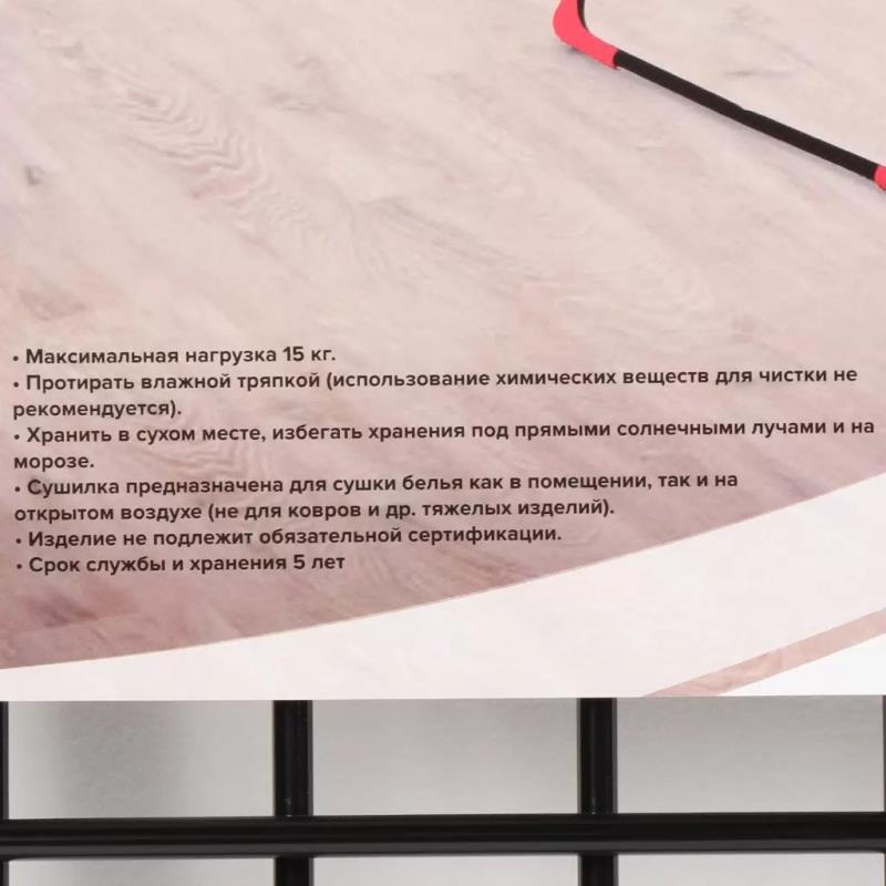 Максимальная нагрузка составляет 15 кг, что позволяет использовать сушилку для сушки различных типов белья.