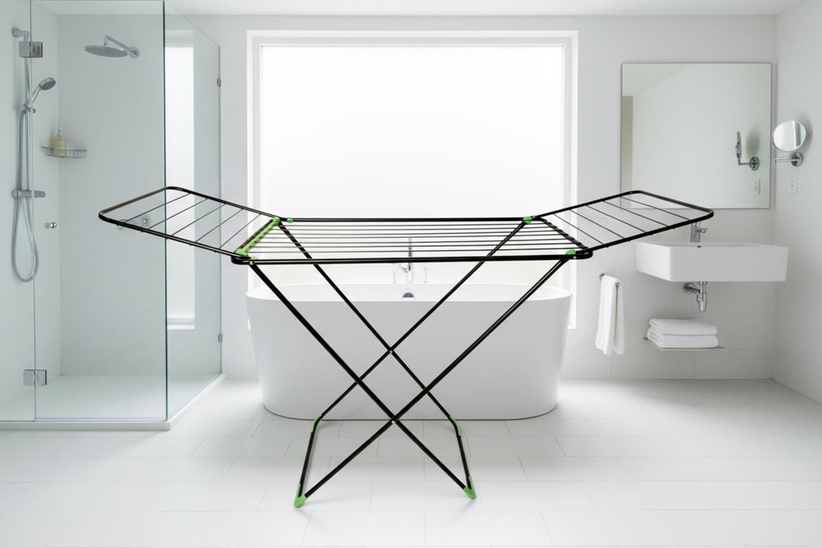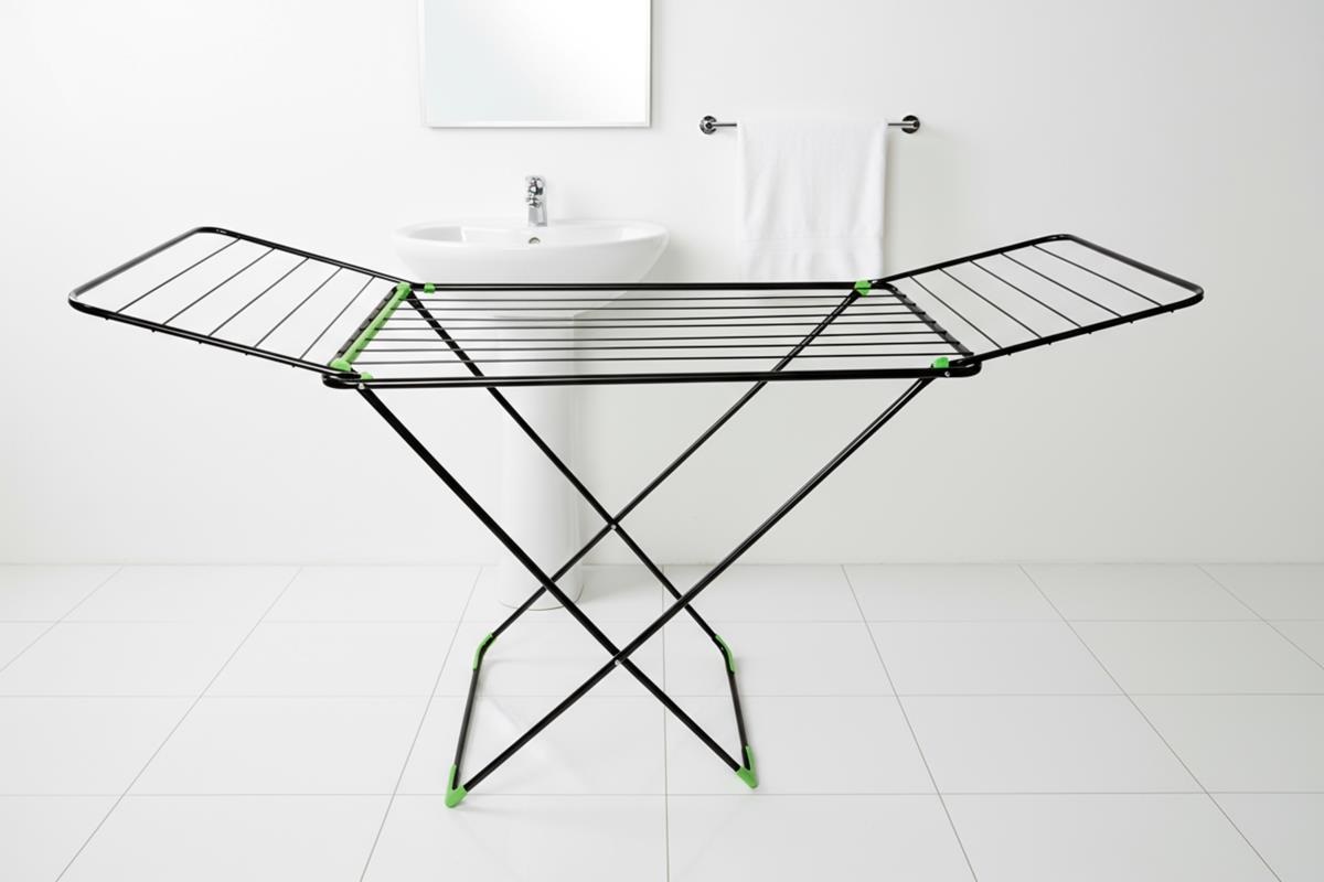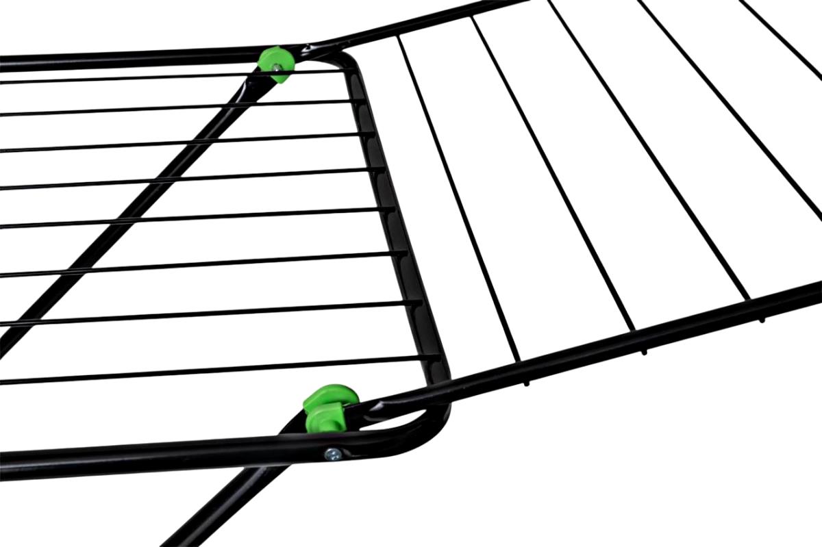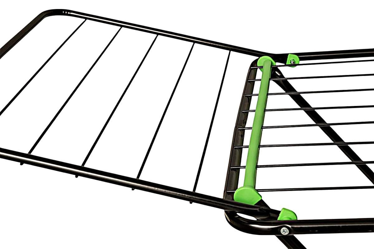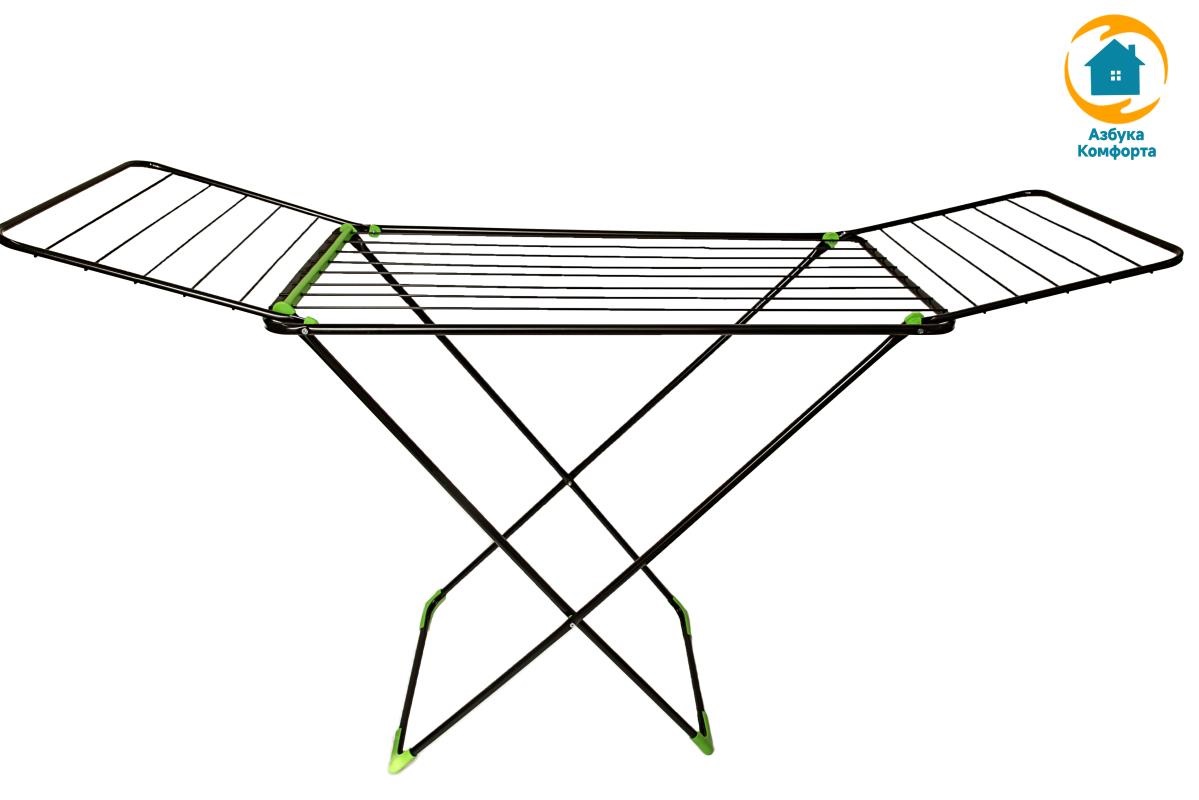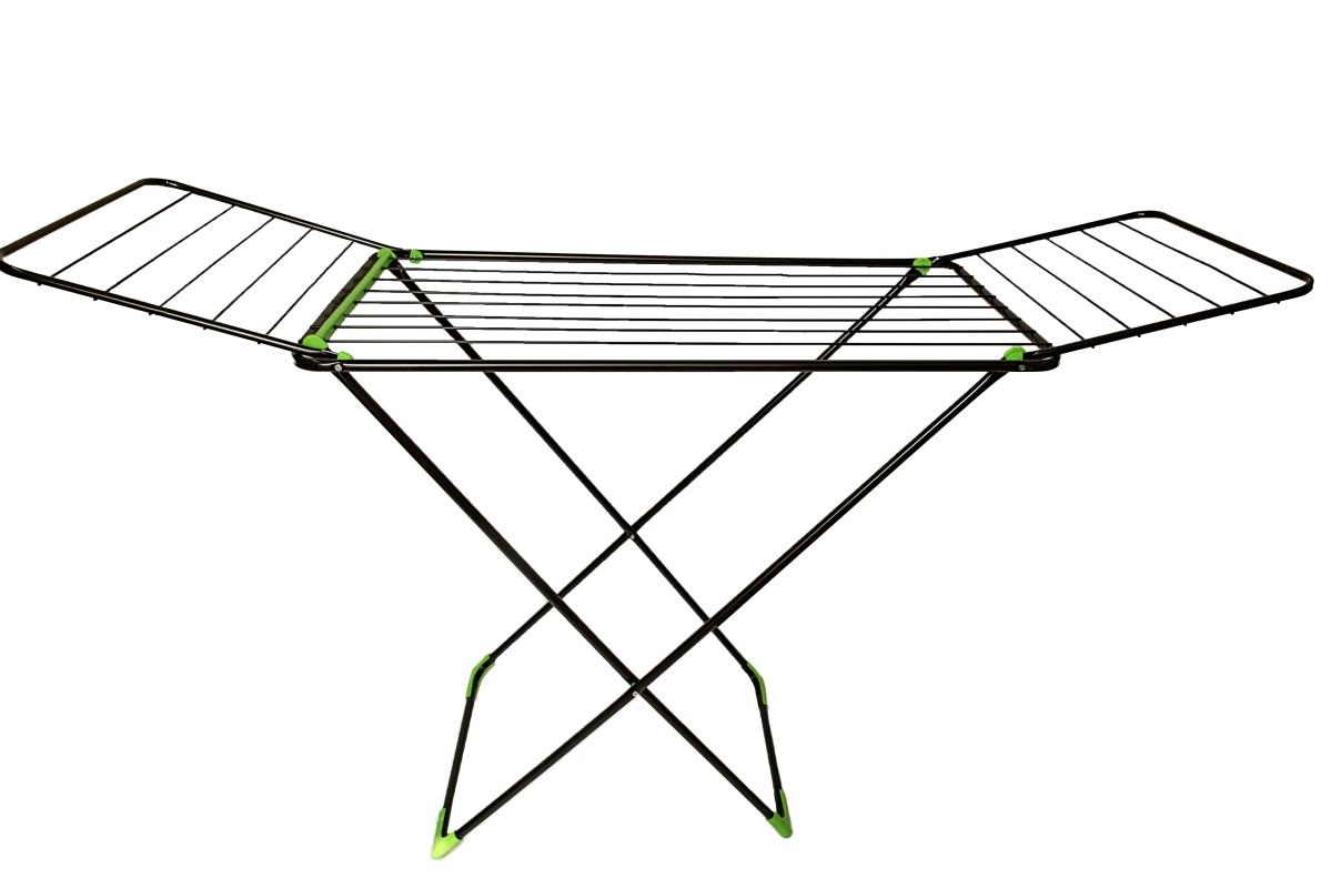 Особенности: - Компактная и устойчивая сушилка с полноценными боковыми «крыльями» выполнеными из трубы 12 мм; - Удобный и надежный механизм раскладывания (скольжение); - Пластиковые колпаки на ножках сушилки защищают пол от царапин; - Все углы на опрных стойках сушилки имеют пластиковые уголки; - Черный цвет.