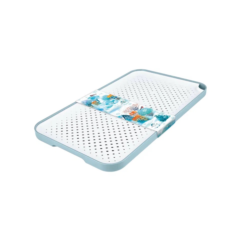 Компактный размер позволяет разместить поднос даже на небольшой кухне. Специальная сетка на поддоне обеспечивает хорошую циркуляцию воздуха, что способствует быстрому высыханию. Может использоваться для сушки не только посуды, но и овощей, фруктов и даже мелких вещей. Стильный дизайн в голубых и белых тонах будет хорошо смотреться в интерьере кухни и ванной комнаты, поддерживая чистоту и порядок.