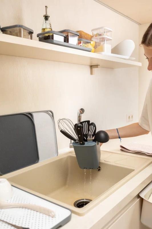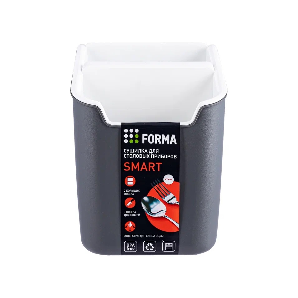 Сушилка для столовых приборов Smart представляет собой стильное и практичное решение для кухни. Съёмная вставка с разделителями позволяет удобно разложить столовые приборы, а сливное отверстие предотвращает скопление воды и обеспечивает быструю сушку. Прочный корпус и устойчивое основание обеспечивают надёжность, компактная форма экономит место на кухне, а универсальный цвет гармонично впишется в любой интерьер. Сушилка для столовых приборов Smart поможет поддерживать порядок и чистоту каждый день.