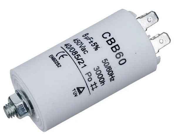 Конденсатор пусковой полипропиленовый 8uF 450VAC 2 клеммы/CBB60